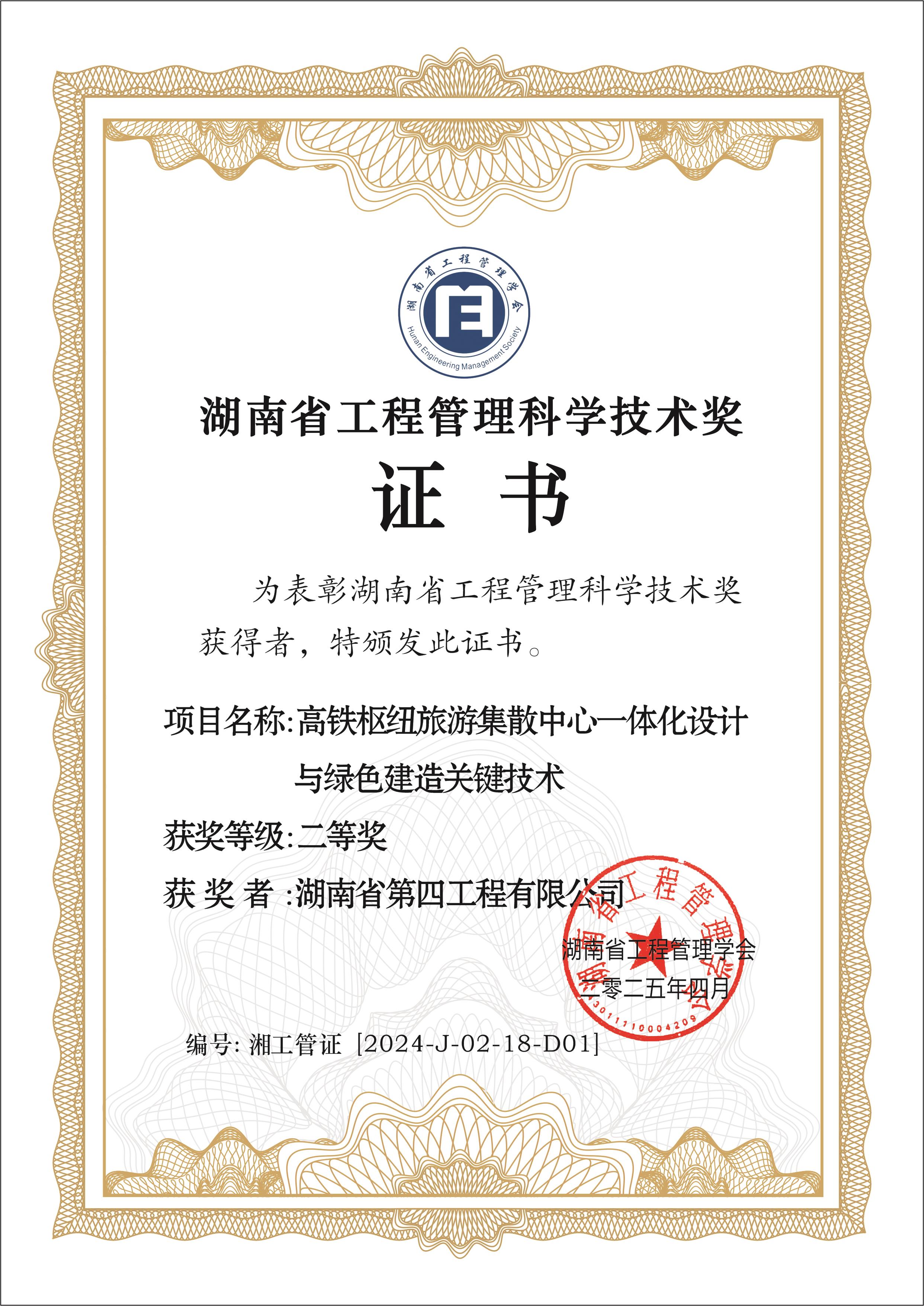 會議頒發(fā)了2024年度湖南省工程管理科學(xué)技術(shù)獎(jiǎng),公司申報(bào)的“高鐵樞紐旅游集散中心一體化設(shè)計(jì)與綠色建造關(guān)鍵技術(shù)”喜獲二等獎(jiǎng),這是對公司科技水平的高度認(rèn)可與肯定。